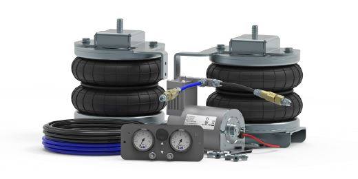 Set vsebuje: zračne blazine s pripadajočimi nosilci za x250 oz. x290, zmogljiv kompresor Heavy Duty, kontrolno ploščo z dvema manometroma, pnevmatske cevi in ostali montažni material.